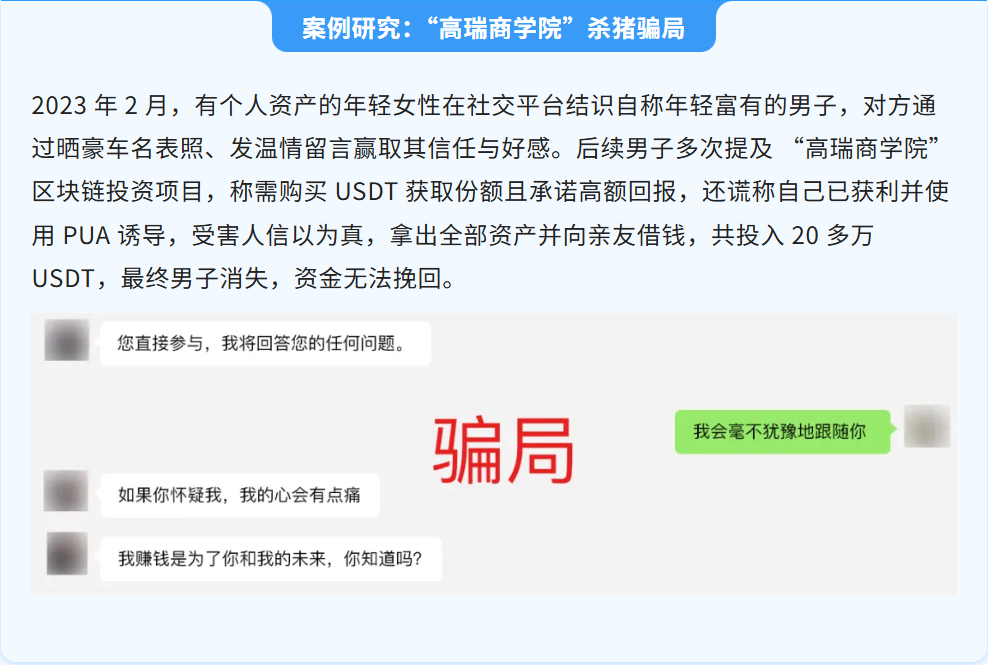 今年年中,美国联邦贸易委员会(FTC)警告 “杀猪盘” 骗局急剧增加,尤其涉爱情和加密货币投资的类型;全球加密领域某权威区块链监管机构年中报告则指出,“杀猪盘” 已是目前涉虚拟币且能获取收益的最大规模骗局,且诈骗分子已从大型庞氏骗局转向 “杀猪盘” 、“在家工作” 骗局等更具针对性的诈骗方式。