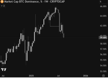 当前 BTC 主导率依然偏高,但已有松动迹象。一旦跌破关键水平,资金风险偏好会迅速转向小市值币,这是典型的末期狂欢信号。