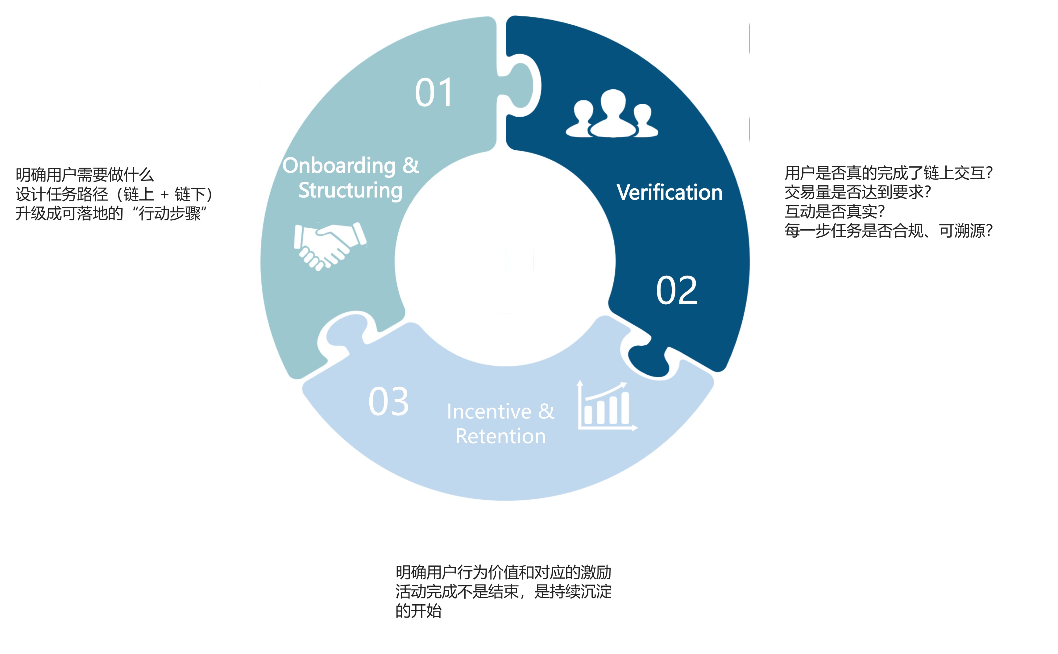 不同赛道需要的行为不同,但所有赛道都需要“触发—验证—激励”这一完整参与周期,Web3项目需要从自身产品特色出发,使用能够验证、增长、留存的工具将这个周期串起来,让行为能被执行、被验证、被激励。