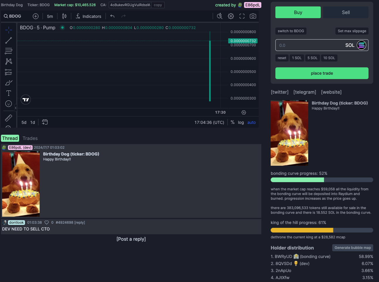 - 初始市值:每个新创建的代币初始虚拟市值为 30 sol。
