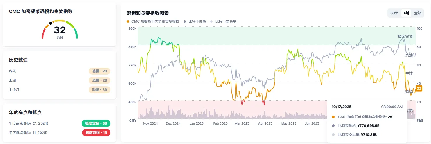 市场情绪指数:周五报 32,较上周小幅回升,但盘中多数币种横盘,仅个别代币活跃;
