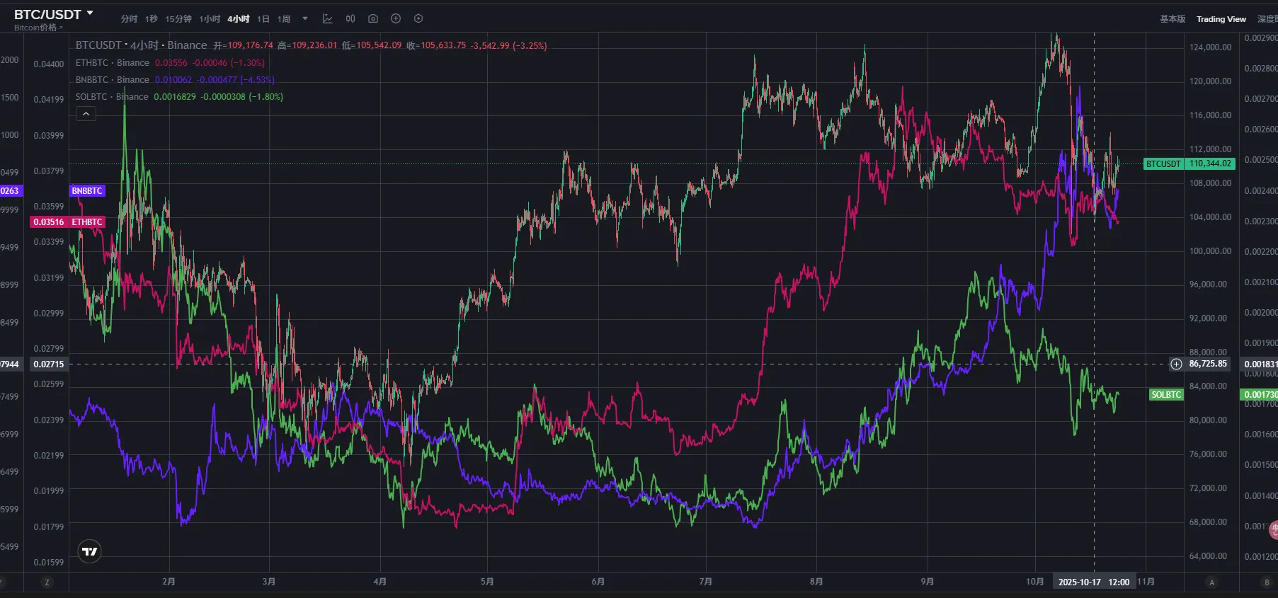 主流山寨汇率:SOL/BTC、ETH/BTC、BNB/BTC 均小幅下跌,山寨整体相对偏弱,需待后市情绪明朗后才有望好转。