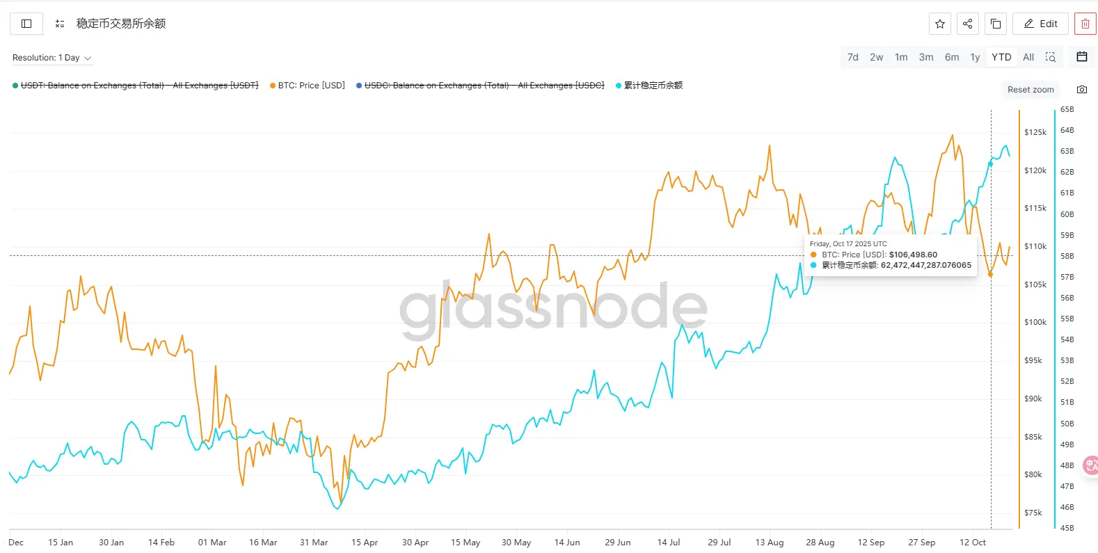 交易所稳定币余额本周震荡,主要受 “中美谈判不确定性” 影响,打断了此前的持续流入节奏。