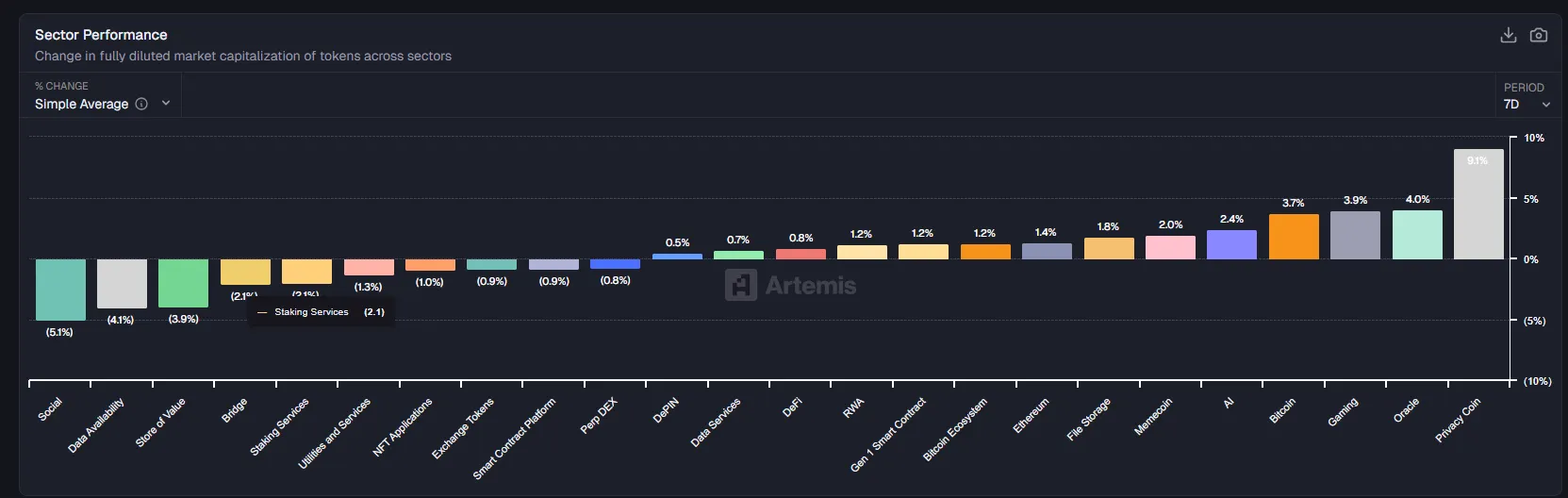 4.2 二级市场:BTC 占比回升,隐私代币独强