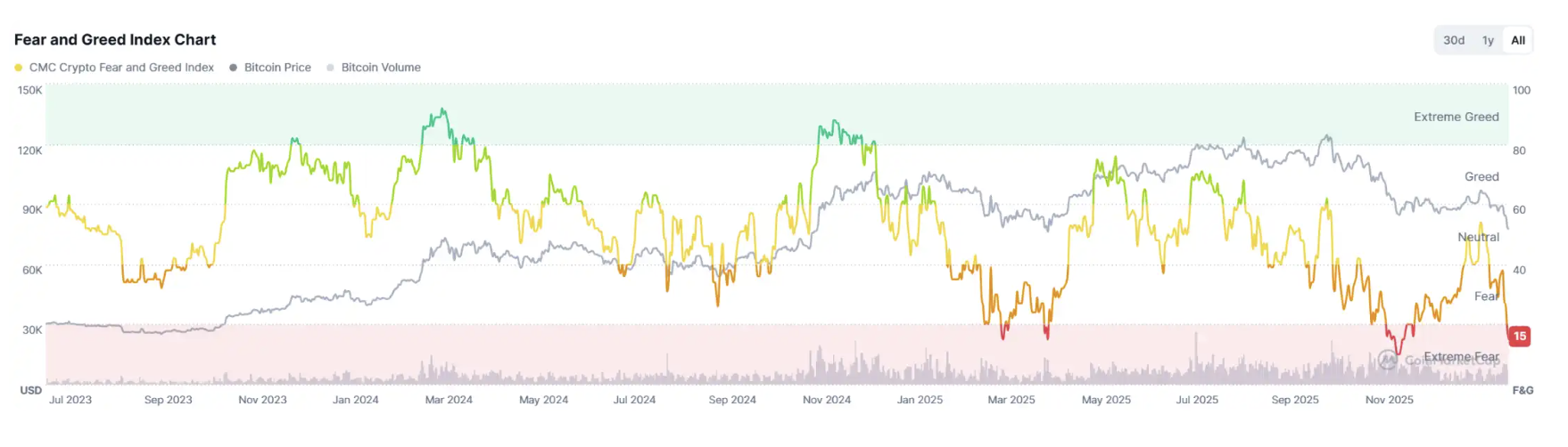 市场恐慌指数 15,市场情绪再次陷入极度恐慌。