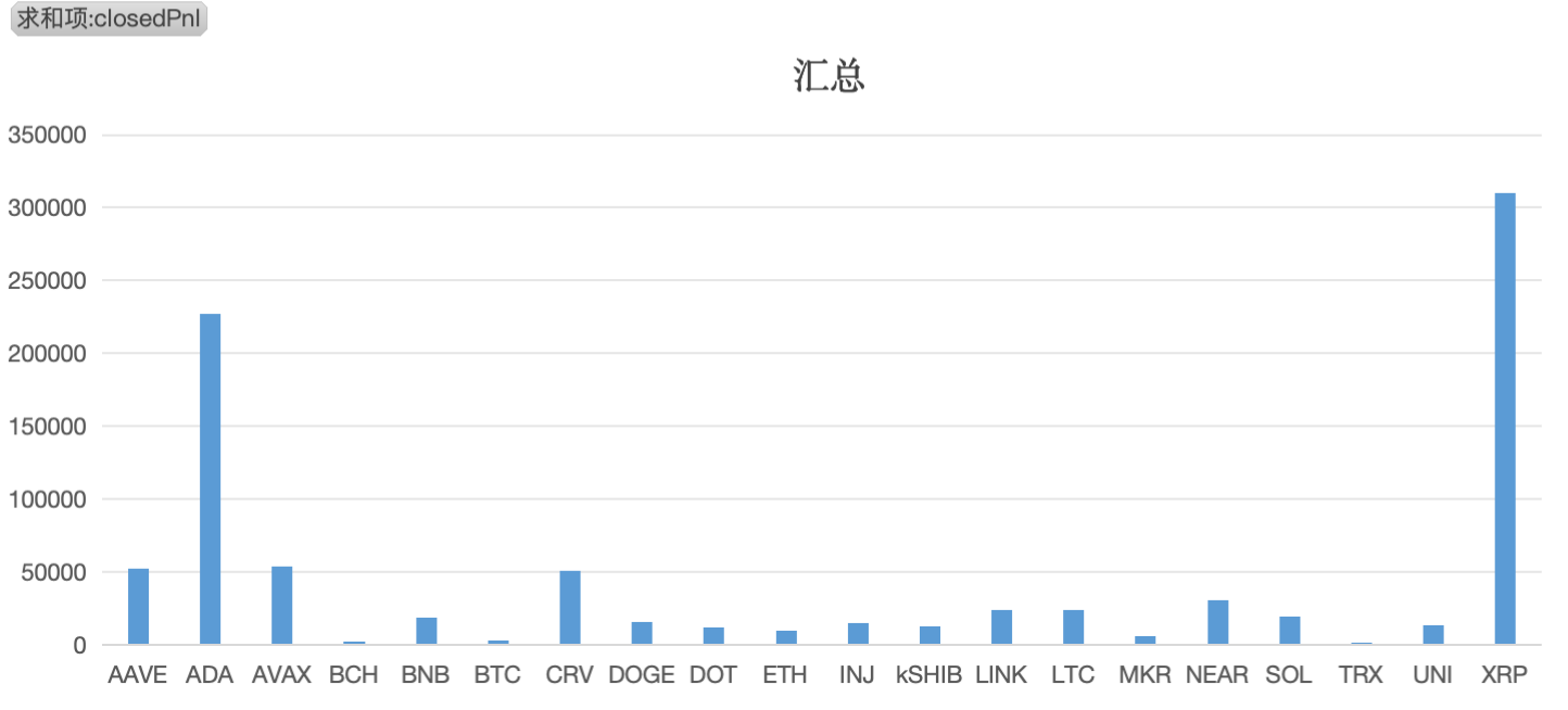 - 币种盈亏: 策略的资产选择能力极为出色。在分析期内,其交易过的全部 20 种资产均未出现净亏损。盈利贡献最大的头寸来自于 $XRP 的多头仓位(+$310,000),是该周期的核心利润引擎。