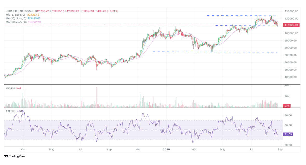 比特币(BTC)当前报109,741美元,持续徘徊在110,530美元关键支撑位下方。尽管多头屡次尝试捍卫该防线,但反弹力度疲弱凸显空头压力依然顽固。任何上攻尝试都可能面临115,639美元(20日均线)的强大阻力,若失守当前支撑区域,跌势或加速下探105,000美元,而100,000美元心理关口将成为市场情绪的重大考验。反之若强势突破117,500美元,则意味着BTC正在110,530至124,474美元宽幅区间内企稳,预示市场或进入多空平衡的整固阶段。