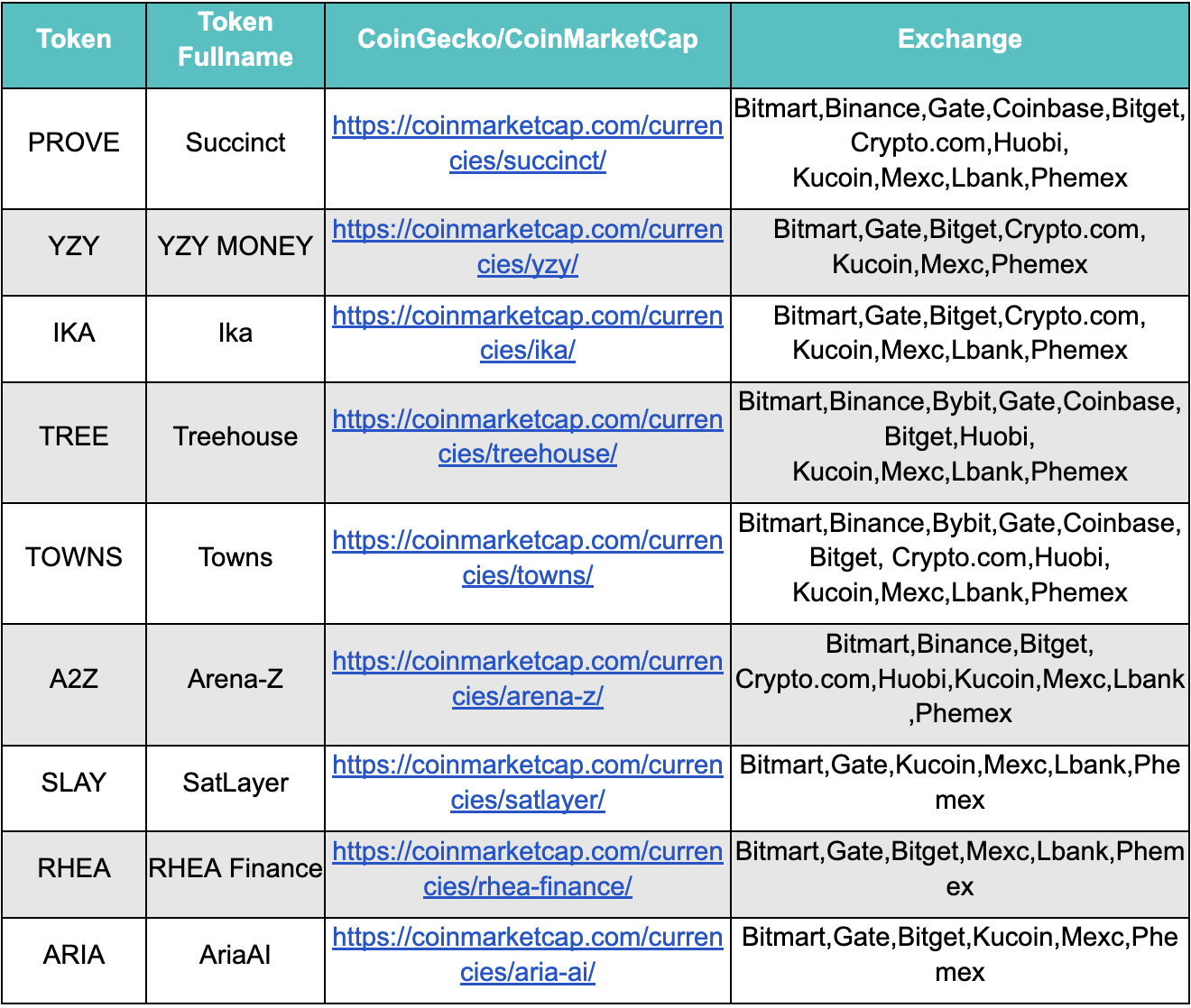 8月新上线的热门代币中,新上线的热门项目主要集中在基础设施和DeFi赛道,其中PROVE、TOWNS、TREE等项目表现最为突出,已在10余家主流交易所上线,流动性充足、市场认可度较高。同时Kanye West推出的个人MEME代币YZY在发行后快速引起市场热度,市值一度突破30亿美元,但随后价格急速下跌出现大幅波动。