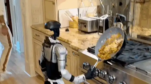 Optimus在超市购物。Neo检查冰箱,向Optimus请求额外的食材。Figure根据用户的过敏信息调整食谱。每个机器人实时连接,像一个团队一样有机运作。用户只需简单地命令:"我想吃蛋包饭。"