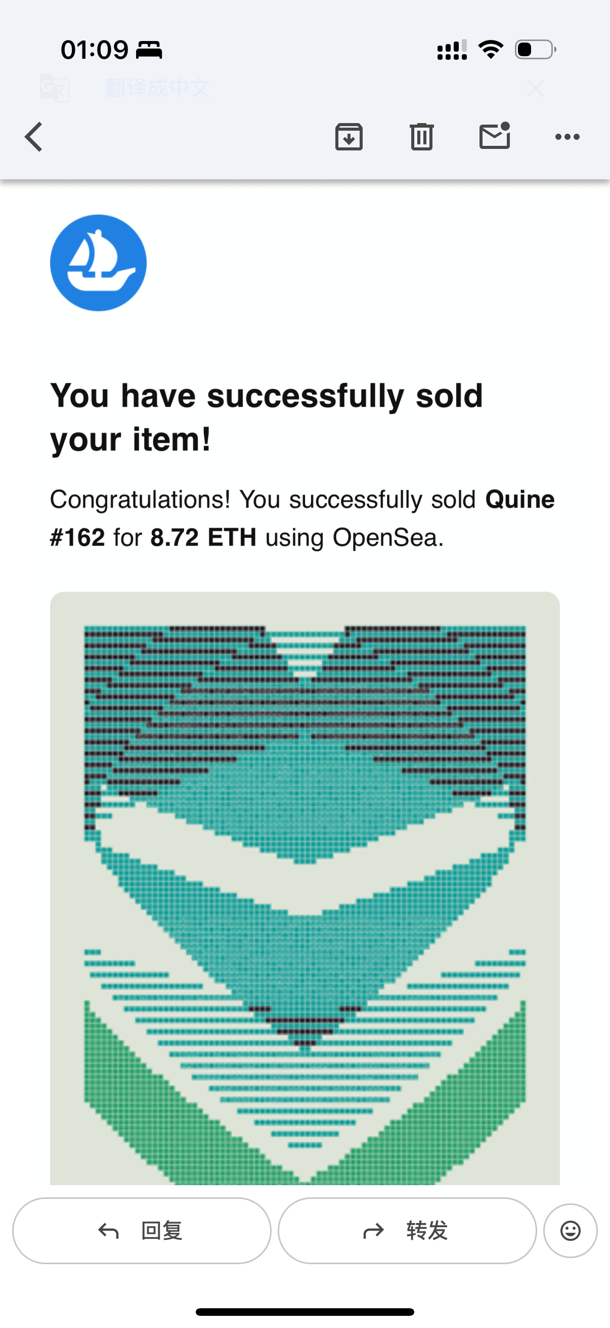第二天开始价格逐步回升,地板价上了9 ETH,我挂售价为8.72 ETH,成功出售。
