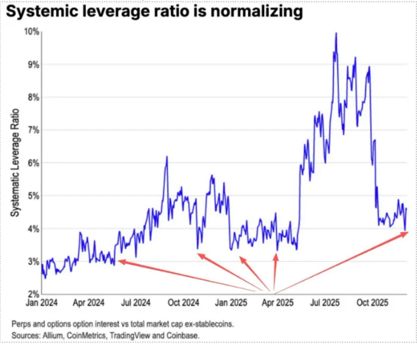 在1011下跌中ETH的期货杠杆盘被充分清理,最后已经杀到现货的杠杆盘,同时很多对ETH信仰不足,导致这很多远古OG纷纷减仓逃跑。根据Coinbase数据,币圈的投机杠杆已经降到历史低位区域4%。