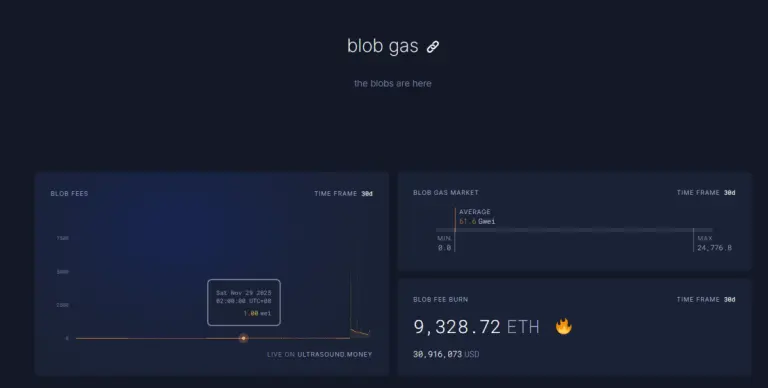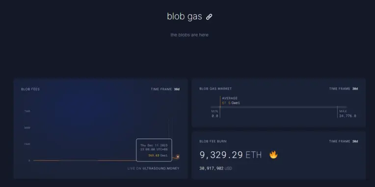 目前blob fees在12.11 23:00 1h的费用已达到Fusaka升级前的5696.3 亿倍,一日燃烧1527枚ETH,blob fees成为燃烧贡献比例最高的部分,高达98%,当ETH L2进一步活跃时,该升级有望让ETH重回通缩。