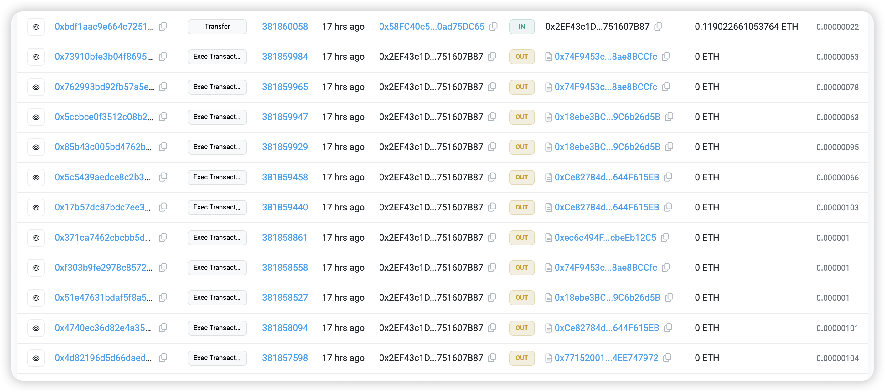 以下为ExVul团队链上追踪到的疑似黑客地址: