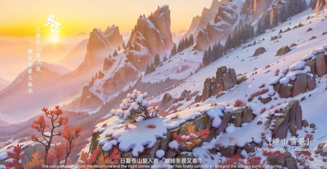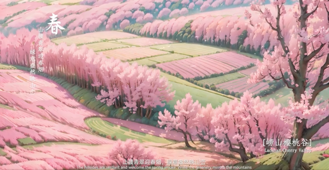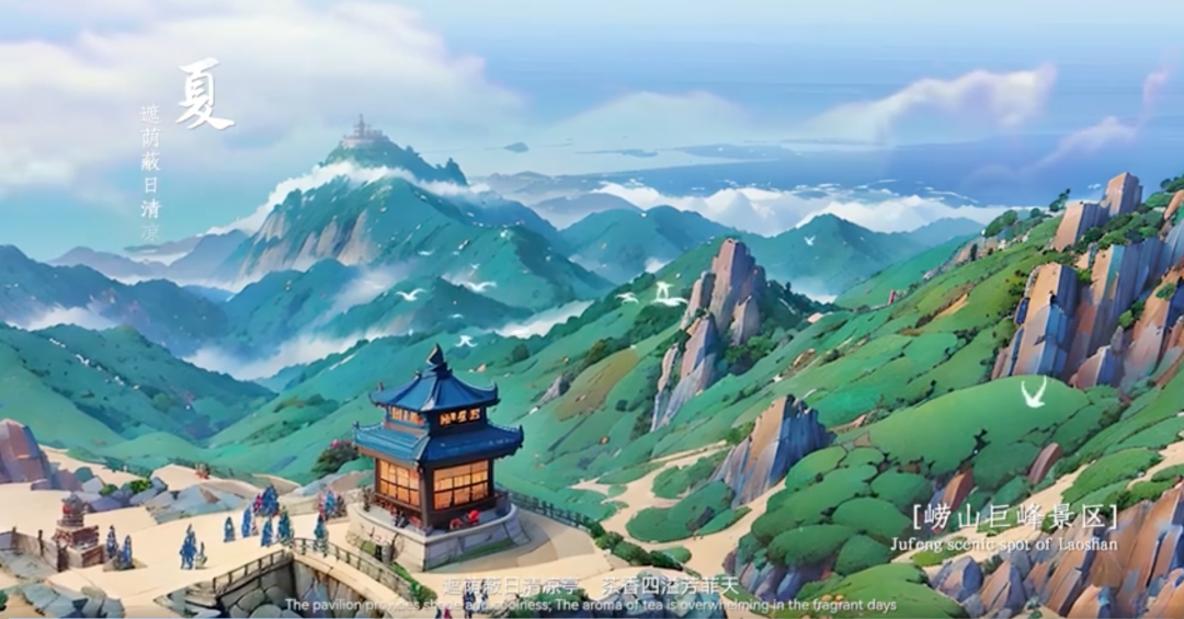 视频名为《AI眼中的崂山四季》,108秒,呈现了青岛崂山大约十个特色“网红打卡点”的四季景色。