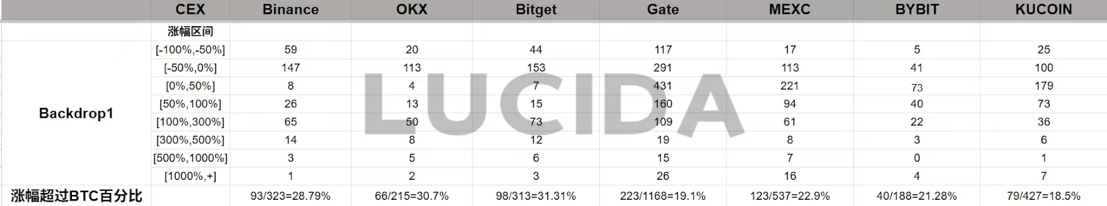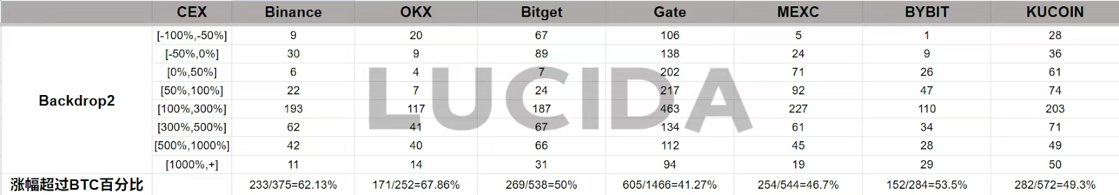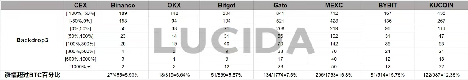 本文所涉及的所有数据与分析均基于公开可获取的市场信息,由LUCIDA独立整理与统计,仅用于学术性与信息分享目的。文中所提及的交易所排名、表现差异及相关结论,不构成任何投资建议,也不代表我们对任何特定交易所的褒贬或倾向性评价。市场情况具有动态变化特征,读者应结合自身判断与风险承受能力,独立作出决策。LUCIDA不对基于本文内容所产生的任何投资行为或后果承担责任。