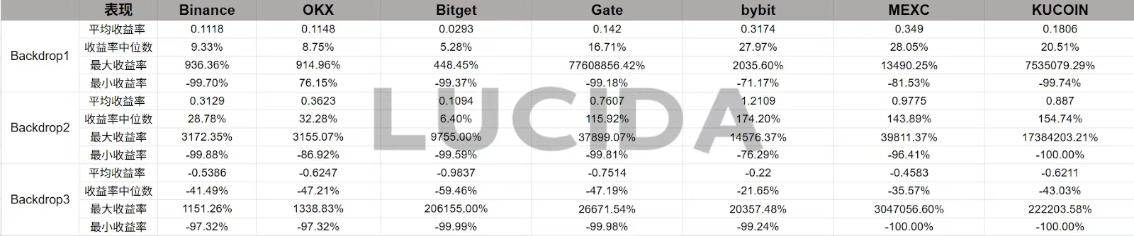 不仅关心币种能否上涨,更关心它能涨多少。LUCIDA从三个层面评估各平台的“造富”能力。