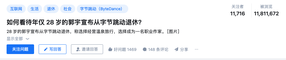 作为早期员工,他全身心投入公司核心项目的开发。字节跳动的估值在六年间暴涨百倍,郭宇手中早期获得的股票期权随之水涨船高。