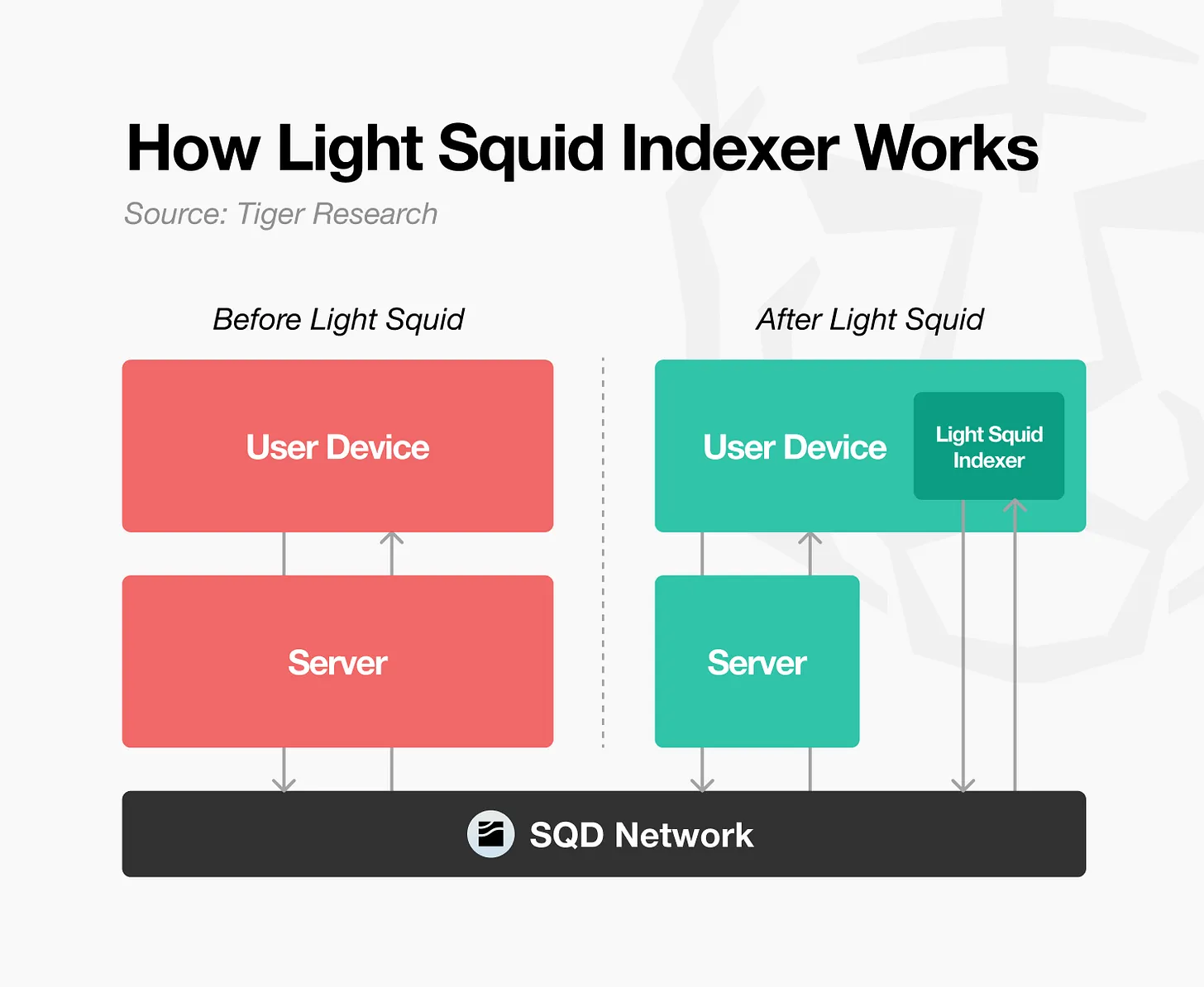SQD 团队正在推进网络结构以满足这些需求。该团队专注于提高数据处理速度和创建能够在不依赖服务器的情况下处理数据的结构。为了实现这一目标,SQD 正在分阶段开发 1) SQD Portal 和 2) Light Squid。