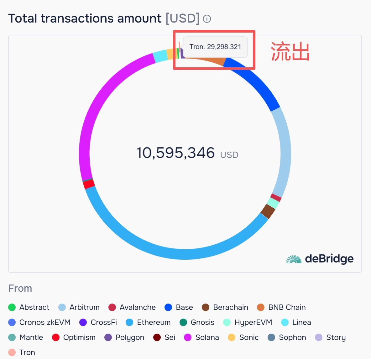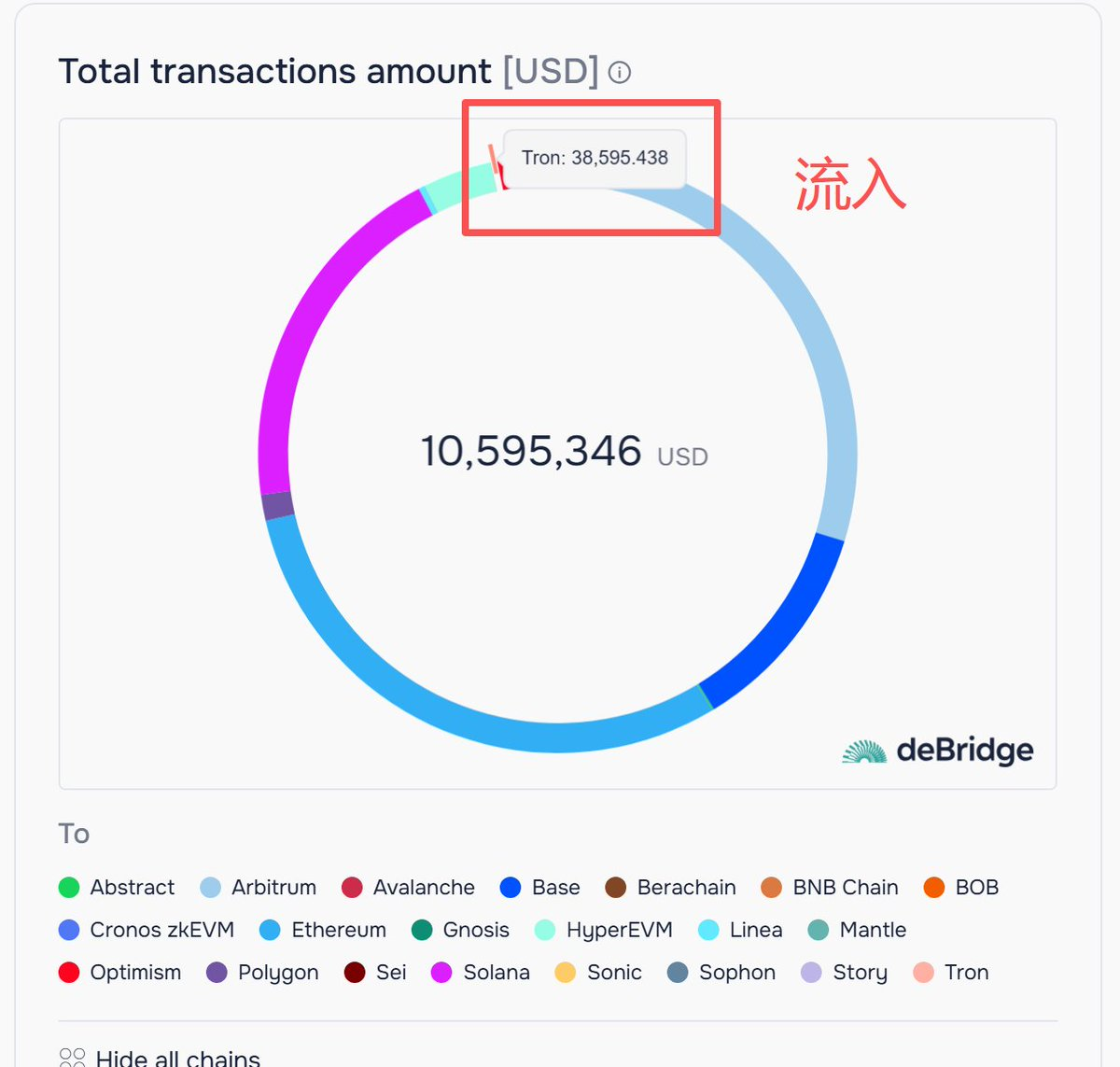 不到1天时间,通过deBridge,已经有近30万美元资金从波场流出,近40万美元的资金流入波场。