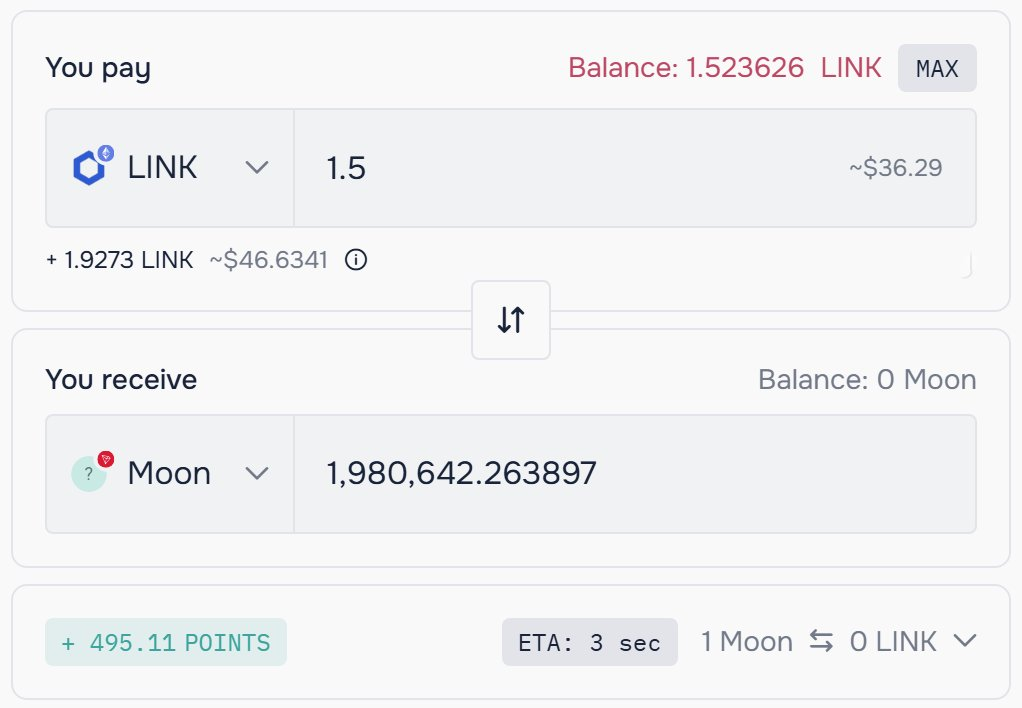 支持跨链从一种代币换成另一种代币,包括土狗。