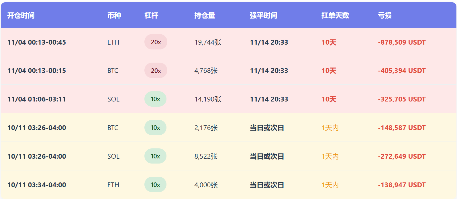 - **集中清算时间:**11/14 20:33:46(一次性爆仓)