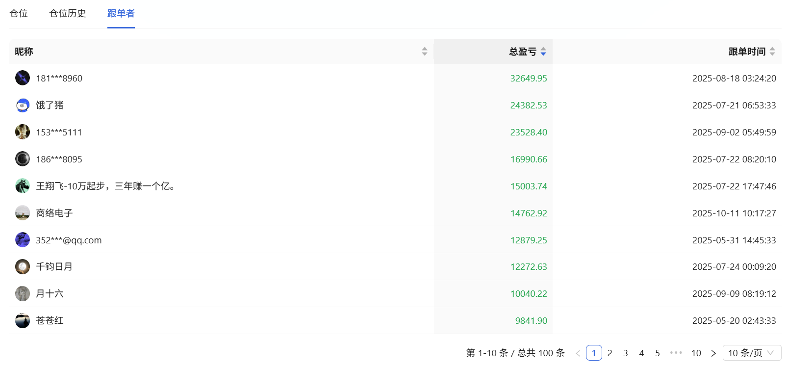 跟单者盈利top榜 (source:VERISCOPE)
