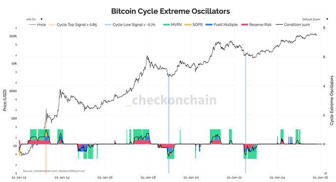 ④ BTC Extreme Oscillator:市场过热警报