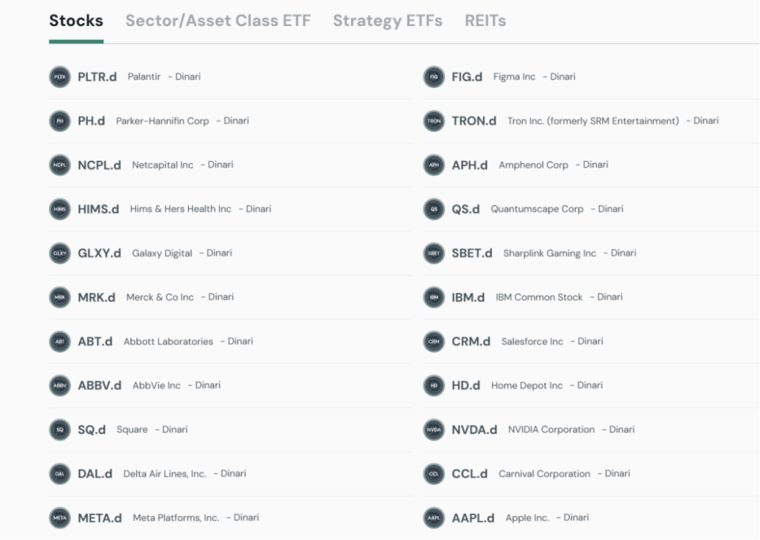在代币化股票赛道中,Dinari 凭借其在美国获得的“经纪自营商”(Broker-Dealer)牌照,将自身定位为一家以合规为核心的底层基础设施服务商,或将为美国境内代币化股票的发行与交易开辟路径。其核心产品 dShares™ 已覆盖超过 100 种美股及 ETF,并已部署在 Arbitrum 和 Ethereum 主网,具备较强流通能力。