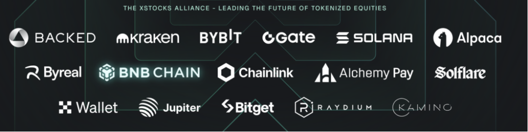 xStocks 的生态系统构建展现出清晰的战略层次。其市场准入首先由核心的发行方 Backed Finance 与顶级的分销渠道方 Bybit、Kraken 联合推动,后者为项目提供了关键的初始流动性与用户触达。在此基础上,xStocks 积极融入其原生公链 Solana 的 DeFi 生态,通过与头部 DEX 聚合器 Jupiter、自动化做市商 Raydium 及借贷协议 Kamino Finance 等集成,旨在打通链上交易与抵押借贷等核心场景。最终,项目通过与支付网关 Alchemy Pay 合作拓宽用户入口,并联合非洲加密货币交易所 VALR 等 上线产品,彰显了其向新兴市场拓展的全球化视野。