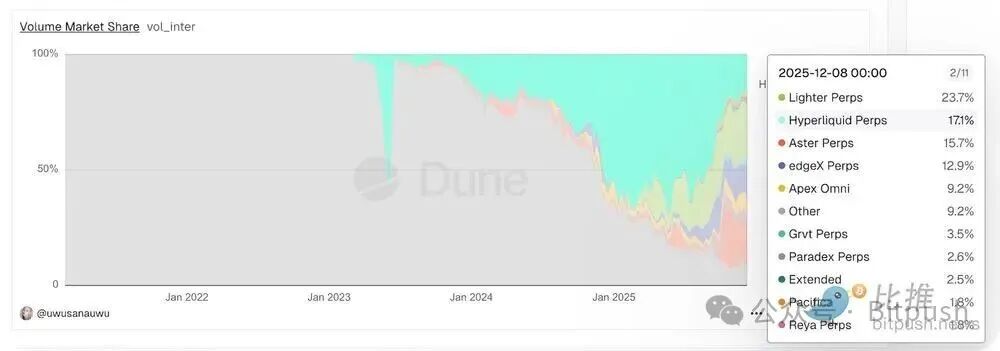 Lighter和Aster只是链上竞争的两个例子。尽管它们的交易量可能因空投猎取行为而被夸大,但它们确实提供了真实的选择。