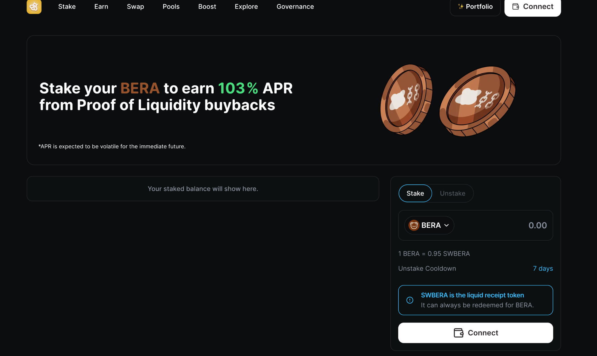 与Lido的stETH类似,sWBERA 代币类似于一个 LST,即可以作为凭证资产,同样也有望在 Berachain 生态的 DeFi 协议中再去捕获收益,提升资金利用率实现一鱼多吃。