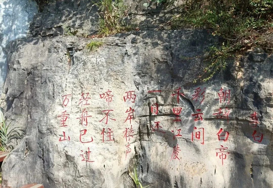 赤甲山最高处海拔有1388米,传说是长江三峡物理形态的最高处。徒步上山的过程中,除了郁郁葱葱的崇山峻岭外,一路都能看到与三峡相关的各类诗歌、故事的岩刻。