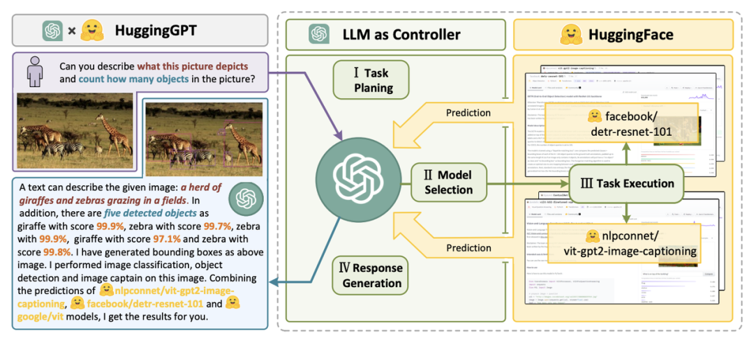 通过将AI模型描述纳入提示中,ChatGPT可以被视为管理人工智能模型的大脑。因此,这一方法可以让ChatGPT能够调用外部模型,来解决实际任务。