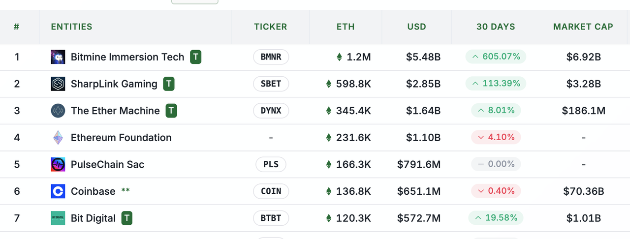 ETH 战略储备排名(来源:strategicethreserve.xyz)