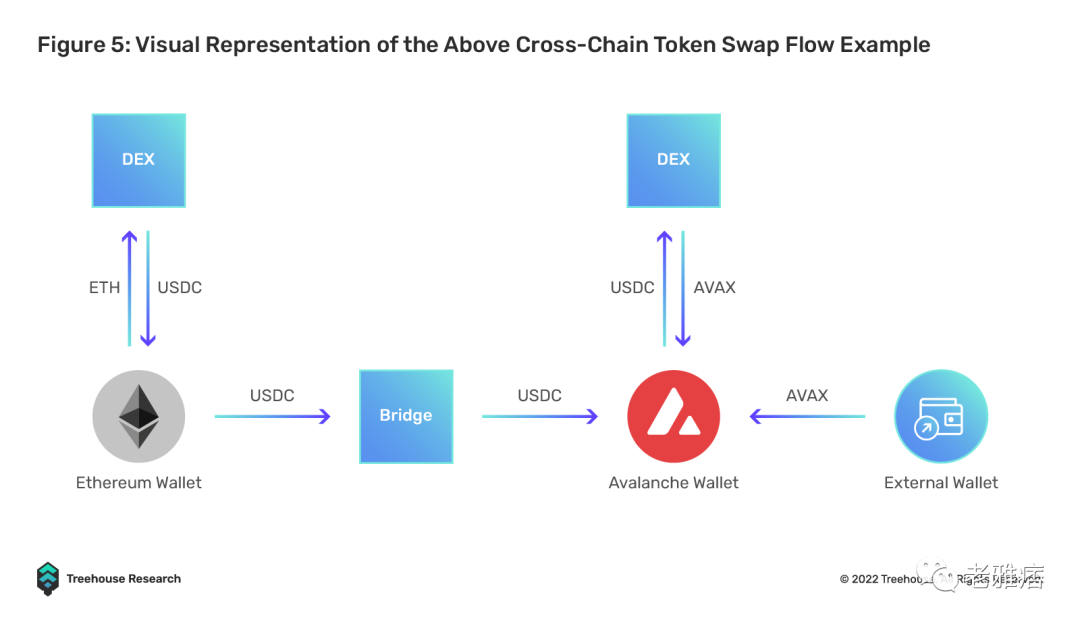 从黑客攻击的流行来看,资产桥的一个主要问题是安全性。大多数 DeFi 协议倾向于继承底层区块链的安全机制,但今天的桥接器却没有。相反,网桥严重依赖一组独立的验证器,而不是它们所服务的 PoS 链的验证器,这使得它们的安全性显着降低。例如,在 PoA(Proof-of-Authority)共识架构下,Solana Wormhole 桥目前只有 19 个“Guardian Network Validator”。安全多方计算模型依赖于几个多重签名密钥来授权任何交易:例如,Ronin Bridge 需要 9 个多重签名密钥中的 4 个来批准交易,而 Harmony Horizon 只需要 5 个多重签名密钥中的 2 个来进行授权。最后但也很重要的一点是,WBTC 桥使用单一托管方法,这会带来中心化风险。由于上述原因,桥目前是区块链生态系统的致命弱点,因为它们比区块链本身更容易受到攻击。除了安全问题之外,桥与 CEX 的相似之处在于它们不能处理复杂的任意数据。桥本质上是跨链典当行——没有人期望典当行会在两家公司之间传递复杂的指令。最后,与大多数桥交互对于普通用户来说是一项繁琐而乏味的任务。下面是一个典型的桥接过程示例:要将以太坊上的 ETH 换成Avalanche上的 AVAX ,需要:- 通过 AVAX Bridge 将 USDC 从以太坊连接到 Avalanche