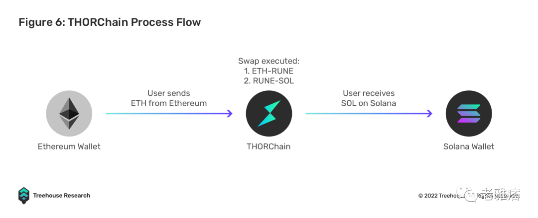 DEX 链在多条链上引入流动性池,并带有中介代币,以方便交换。示例包括 THORChain 和 SifChain。与网桥不同,全链 DEX 不包装资产。相反,他们将原始资产与中间代币交换,然后再将它们交换为目标代币。当然,这些交易是由流动性提供者实现的。例如,在 THORChain 上,当用户希望将 Mainnet 上的 ETH 兑换为 Solana 上的 SOL 时,用户将首先将其 ETH 发送到 THORChain 锁定智能合约。然后 THORChain 将执行从 ETH 到 THOR 的交换,然后是 THOR 到 SOL。随后,将向 Solana 流动性池智能合约发送消息,然后将 SOL 释放到用户的 Solana 地址。THORChain通过锁定和铸币机制消除了创建包装资产的需要,该协议在使用户能够在区块链之间无缝交换本地资产方面提供了真正的效用。这种简单的UI/UX方法将是推动大规模采用的关键卖点,并将用户从中心化的替代品中拉过来。与 CEX 相比,全链 DEX 不需要 KYC。流动性是统一的,因为所有链都使用相同的“原生代币”流动性池进行交易。用户不依赖于 DEX 的预言机或安全假设,因为脱钩风险由流动性提供者承担。全链 DEX 也具有可扩展性,因为任何人都可以为任何货币对增加流动性。然而,THORChain 的中间链设计带来了一些关键风险和细微差别。由于 THORChain 网络由债券证明网络保护,节点运营商承诺 RUNE 债券来承销 DEX 流动性池中的资产,随着流动性池中 TVL 的增长,节点运营商需要承担越来越多的风险。由Incentive Pendulum自然激励,节点运营商必须将 RUNE 与汇集的资本结合起来,才能在最佳状态下运行。这意味着在 THORChain 网络上建立一个完整的节点变得越来越需要更多的资金。目前,该网络有 95 个活跃节点,TVL 超过 2.6 亿美元,全节点平均债券为 838,499 RUNE,或按市场价格计算为 1,468,839.90 美元。在 95 个活跃节点中,保税资本最低的节点约为 528,000 RUNE 或 929,000 美元。结果,资本相对较低的小型节点运营商无法参与保护网络,从而导致控制权集中到资本预算较大的节点运营商。不经意间,这引出了一个问题,即具有类似设计的 THORChain 或全链 DEX 是否真的像宣传的那样去中心化。除此之外,Thorchain 的大部分(如果不是全部)全节点都托管在中心化的云计算服务上。在 95 个节点中,有87 个节点托管在 Google、AWS 和 Digitalocean 等主要云服务上,其中 AWS 以 38% 的份额占据最大份额。从理论上讲,这对网络构成重大风险,因为云计算服务可能面临网络中断甚至受到监管。虽然这种互操作性设计引入了许多新颖的方法,通过出色的 UI/UX 将区块链相互连接起来,巧妙地设计了代币经济学和安全机制,同时保留了其无需信任的设计,但协议的复杂性导致它受到许多攻击和安全漏洞的影响。THORChain 协议在过去一年中被利用了 3 次,将超过 1200 万美元的汇集流动性损失给了不良行为者。与任何新的创新一样,成长的痛苦是不可避免的。此后,THORChain 团队更加关注协议安全性,并引入了新的改进以增加流动性和整体网络去中心化。网络的网络