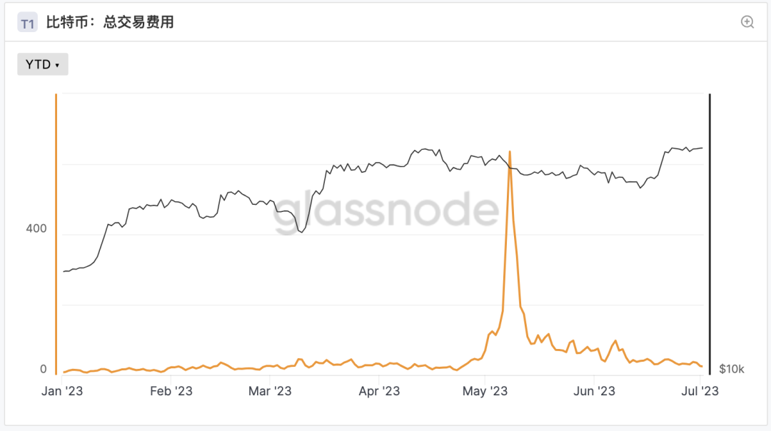 而在今年五月中旬,BRC-20协议的爆火,使得比特币网络拥堵,手续费飙升,巅峰时,交易量较平时增加一倍,区块生产者一周赚取超3600万美元手续费,占区块生产总收入的15.9%。