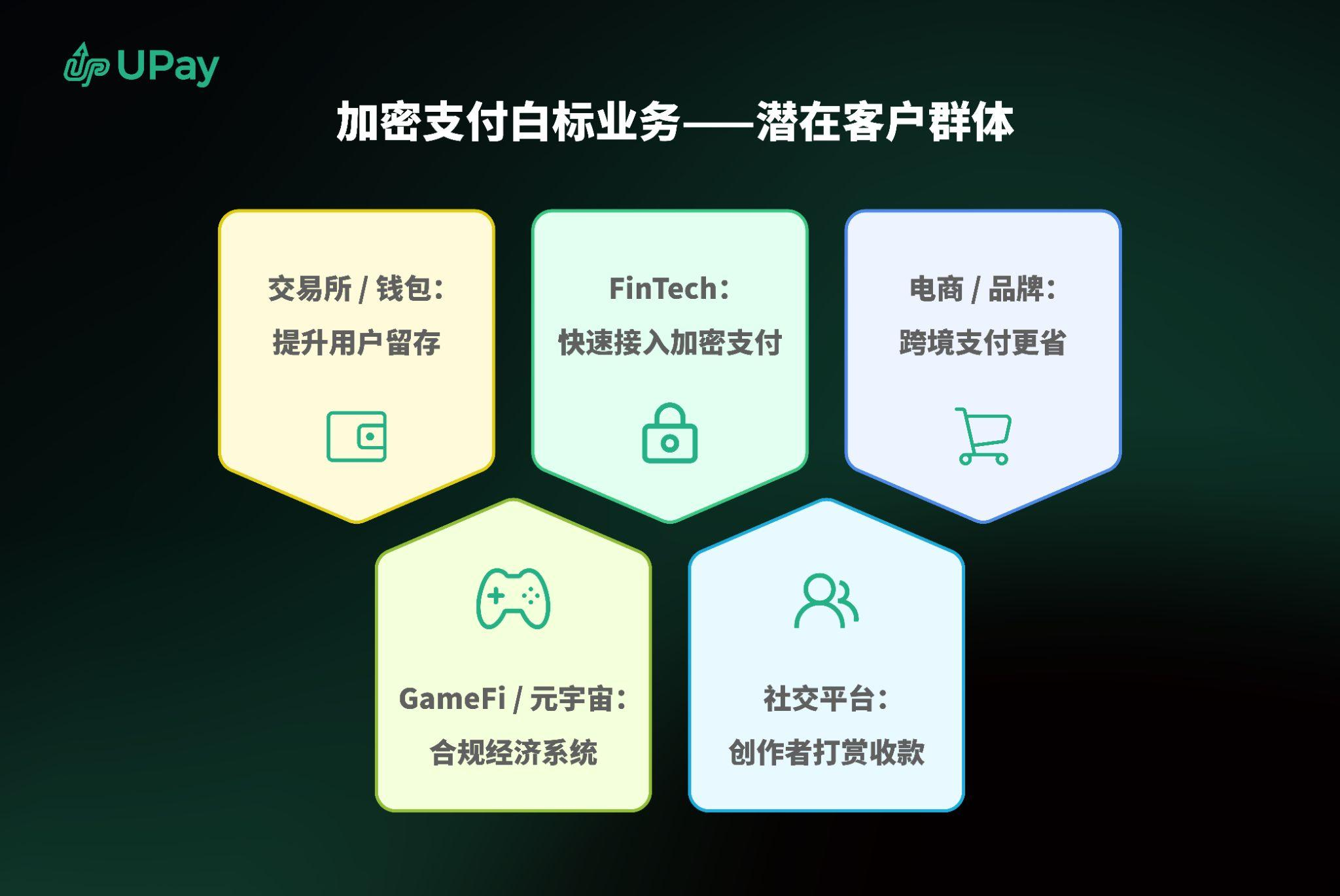 白标支付网关: 让全球电商平台和线下商户,能够以自己的品牌名义,轻松接受加密货币付款,而结算和兑换由UPay在后端处理。