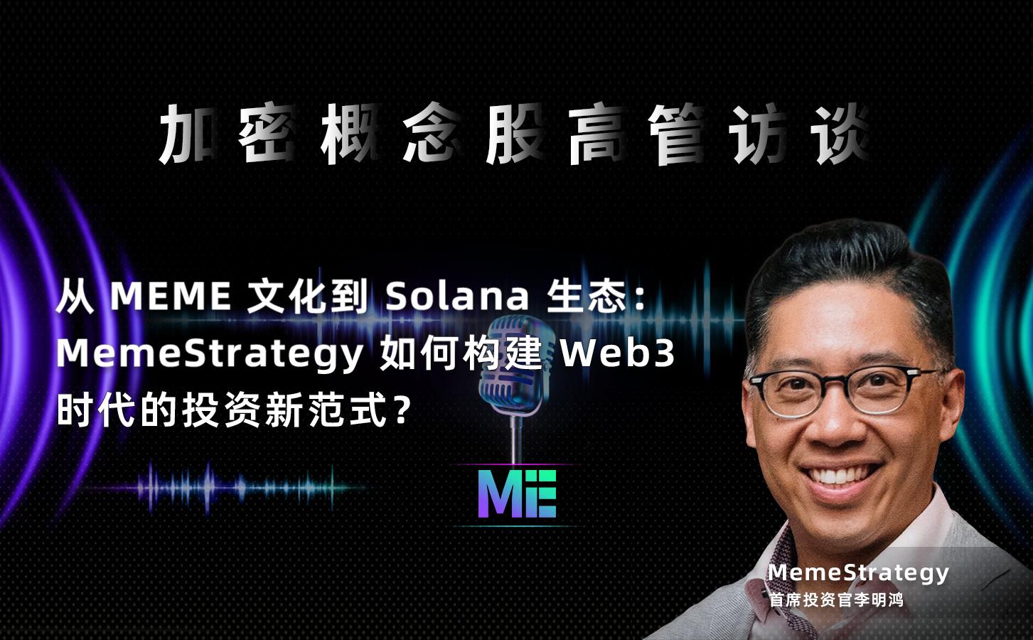 本期访谈嘉宾是 MemeStrategy 迷策略(2440.HK)首席投资官李明鸿,其以深厚的传统金融经验和对 Web3 前沿的敏锐洞察,分享了 MemeStrategy 迷策略如何桥接新旧经济、深耕投资赛道并探索加密资产的潜力。这场访谈从文化的力量出发,深入剖析公司战略与个人经历,勾勒出 Web3 时代的上市企业探索新科技和新经济的蓝图。