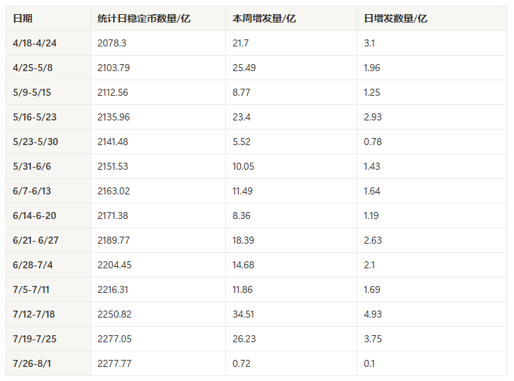 稳定币单周增发重回 5 亿美元以上;