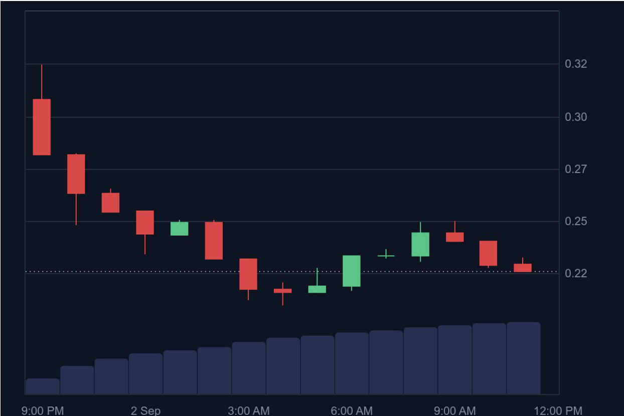 WLFI 在 9 月 1 日上线后,受制于初始流通规模不透明的影响,其代币价格走势显得相对谨慎。TGE 时价格一度冲高至 0.32 美元,但很快遇到抛压回落,截至 9 月 2 日已回调至 0.225 美元附近。以此计算,WLFI 的初始流通市值约为 57.1 亿美元,完全稀释估值(FDV)则高达 231 亿美元。
