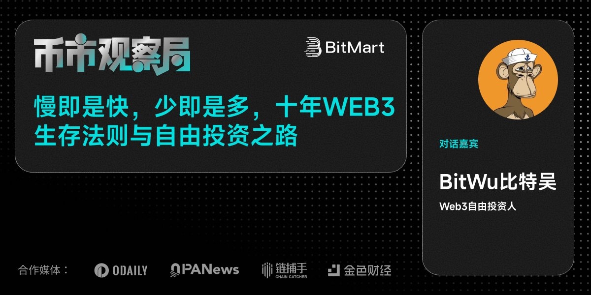 BitMart 全新中文深度访谈栏目《币市观察局》对话 Web3 自由投资人比特吴,聚焦其近十年穿越行业周期的实战经验与深度思考。